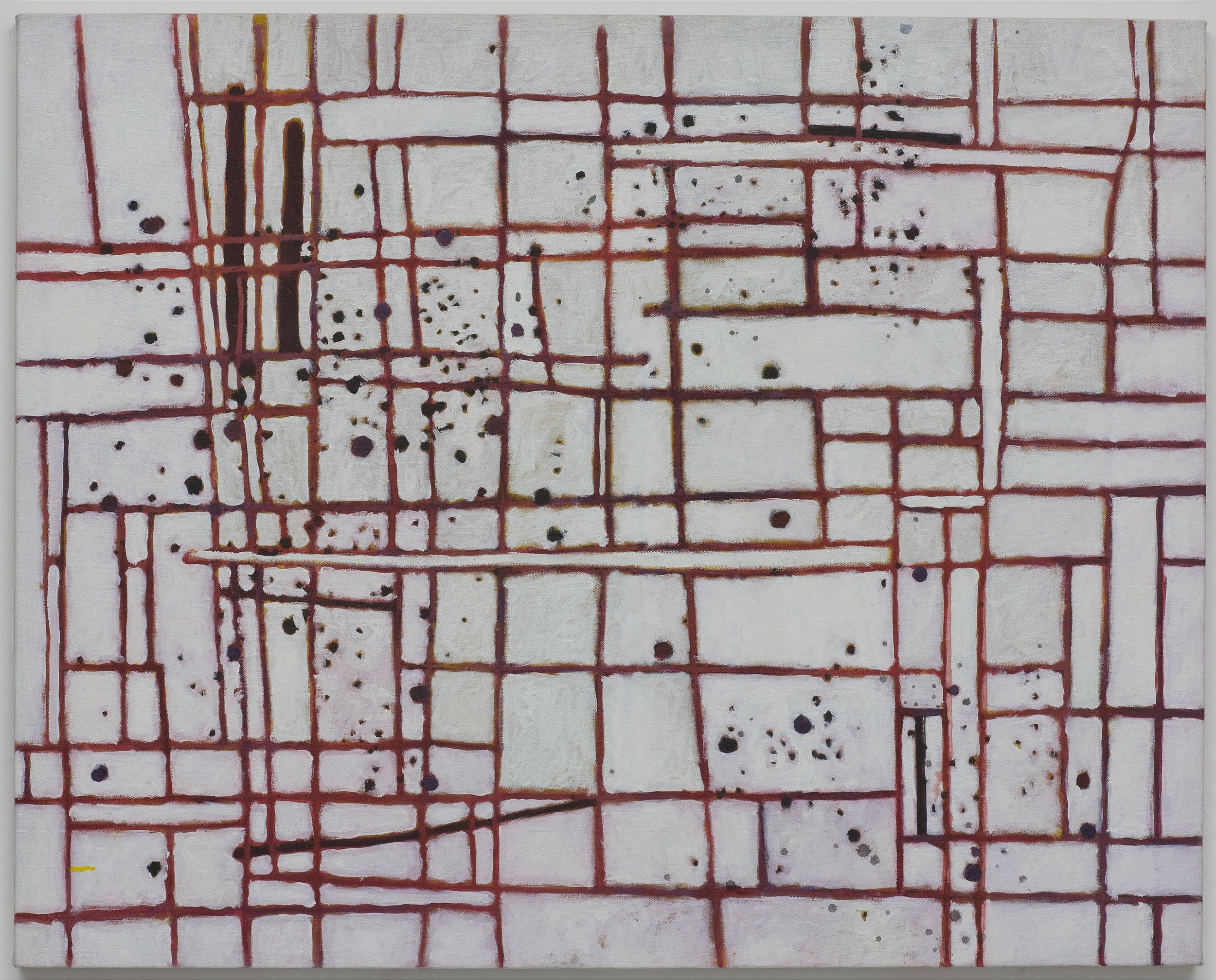 Pintura não-figurativa, livremente inspirada na paisagem da Rua Bryaxis, São Paulo.