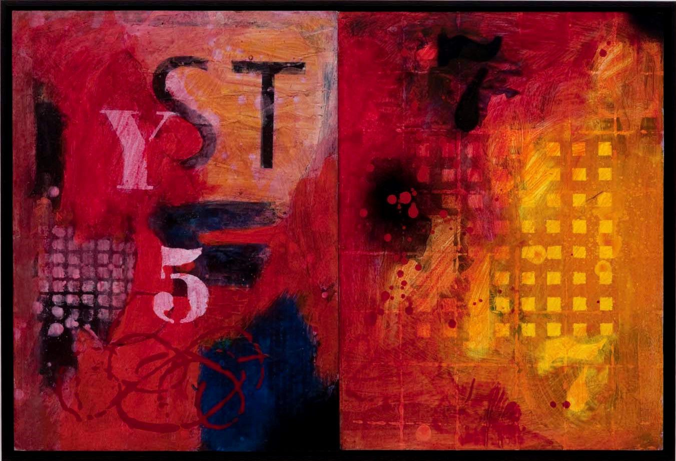"Letras e Números", é uma série de pinturas produzidas com a utilização de elementos gráficos para a composição das imagens. Signos visuais são livremente associados, sem a preocupação na formação de palavras ou de narrativas.